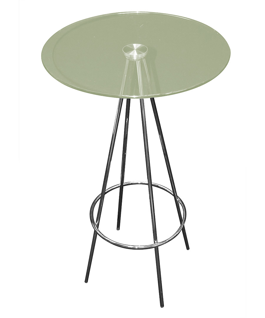 Mesa periquera cubierta de cristal de .60 de diam X 1.10 de altura estructura cromada