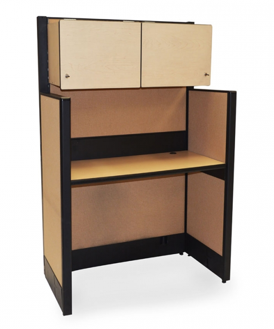Módulo de telemarketing de 1.20 X 60 con librero (1) posicion en tela con cubierta en color haya